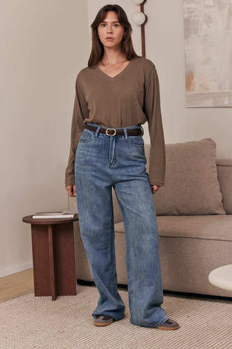 The new star of the wardrobe: soft and flowing fabric in a hysterical cut with a very high waist and wide leg, a unique and mesmerizing blue shade.